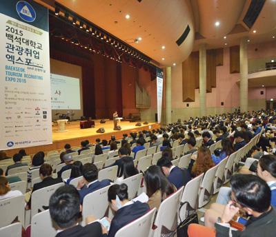 백석대학교(총장 최갑종) 관광학부 특성화사업단(단장 오정학)이 지난 10월22일 오전 11시부터 오후 4시까지 교내 백석홀 및 본부동 1층과 4층에서 재학생 일자리 창출을 위한 '관광 리크루팅 엑스포 2015'를 개최했다.